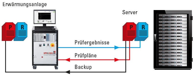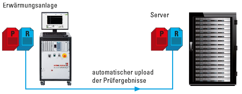 Heating and test plans as well as results can be stored locally or on a central server. This ensures high data security and optimal data exchange between different test systems.