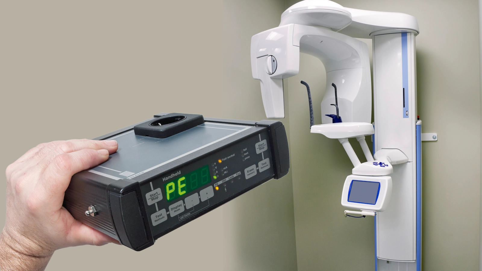 Aplicación típica para comprobar el conductor de protección y el aislamiento de aparatos médicos tras una reparación o mantenimiento.