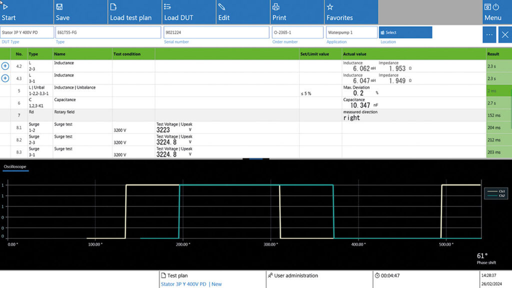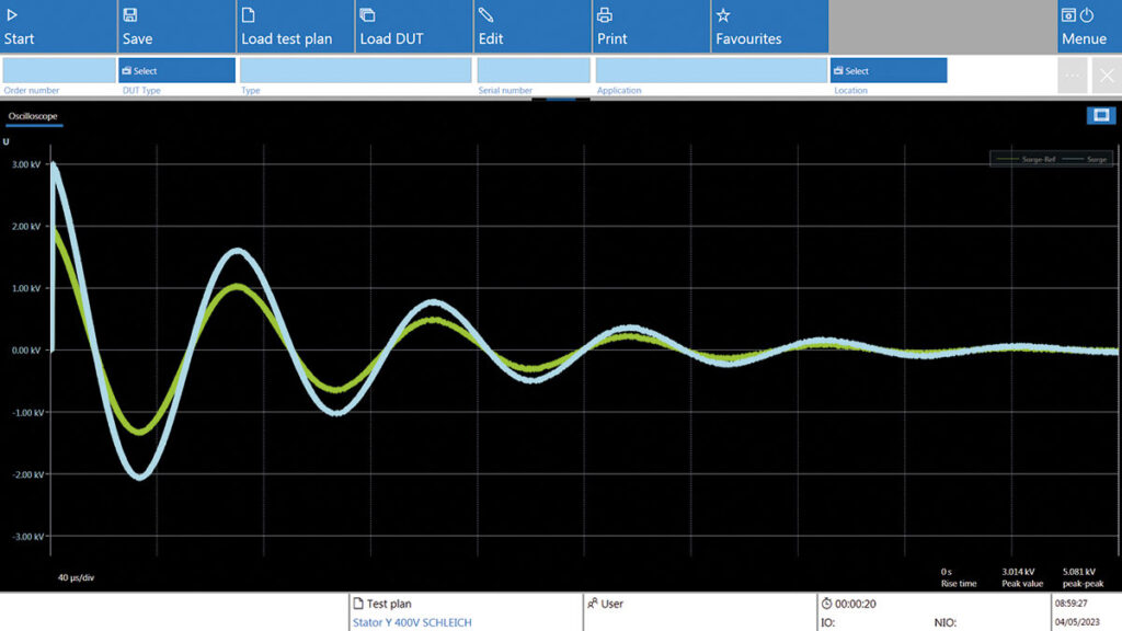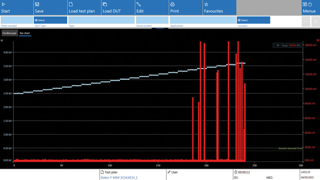 - Contrôle des décharges partielles entièrement intégré selon les normes CEI 61934 et DIN EN 60034-18-41