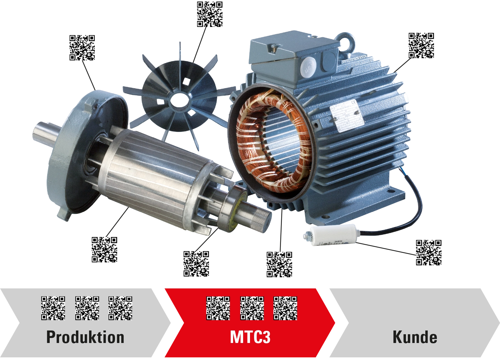 Les systèmes de contrôle MTC3 sont capables d'enregistrer ces marquages et informations supplémentaires, par exemple via la saisie d'un code-barres, et de Enregistrer avec les résultats du contrôle, la date du contrôle et le nom du contrôleur dans la mémoire l'appareil de contrôle ou dans le réseau. Ces informations permettent ensuite de retracer où, quand et par qui les composants ont été traités ou livrés au cours du processus de fabrication.