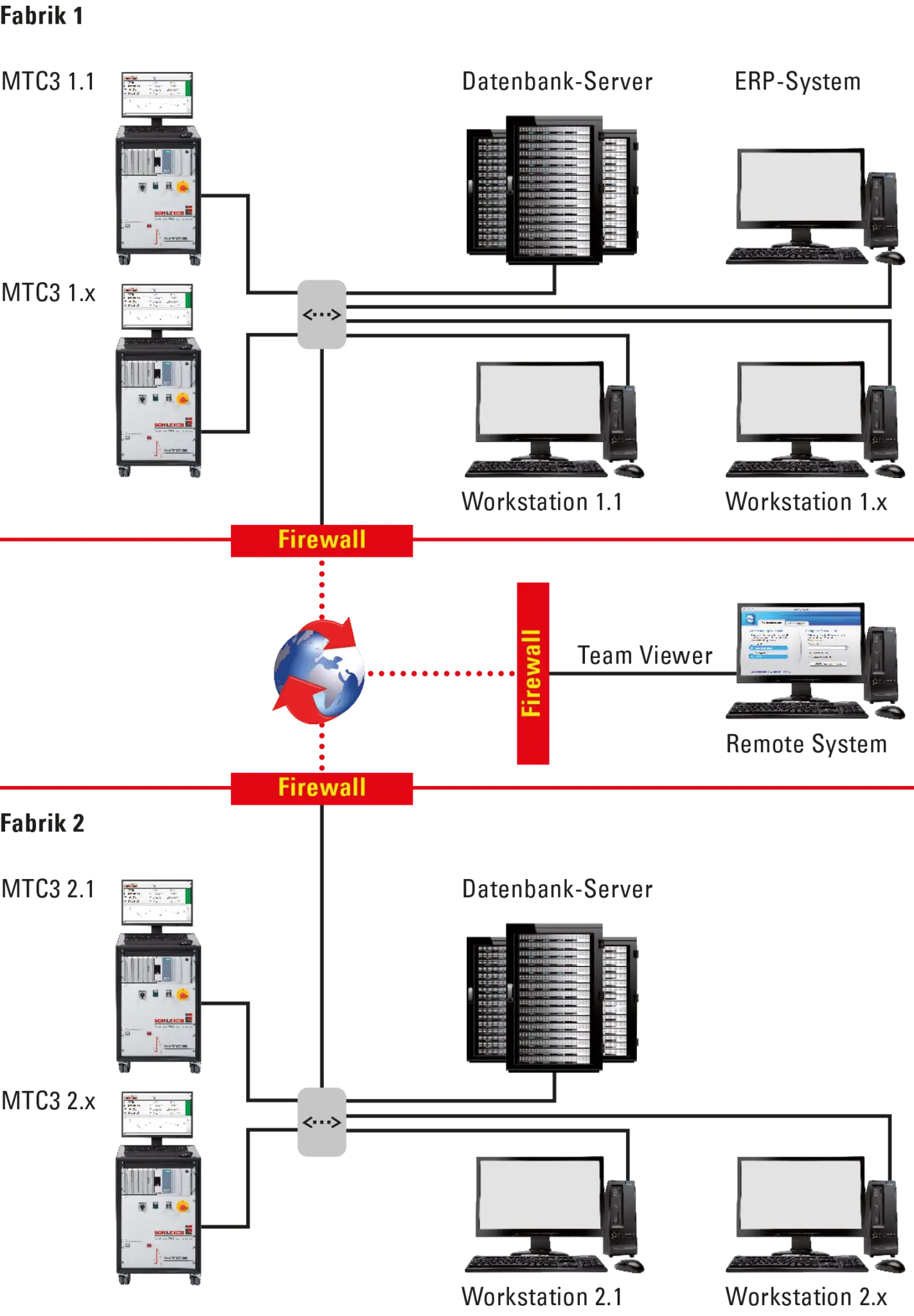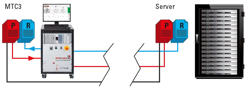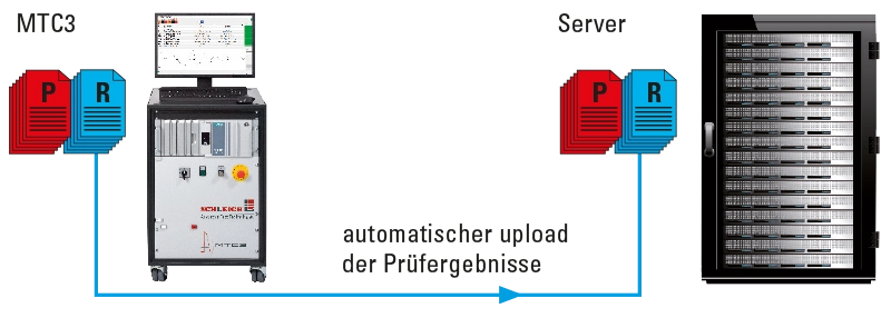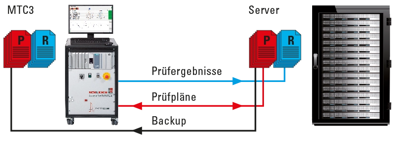 Vous disposez d'une production automatisée et souhaitez intégrer le MTC3 dans votre production. Pour cela, l'appareil de contrôle peut être PLC commandé à distance via des interfaces depuis un PLC . Si nécessaire, les plans de contrôle et Paramètres de test peuvent également être transférés Paramètres de test l'appareil de contrôle. Les résultats du test communiqués de manière qualitative et quantitative.