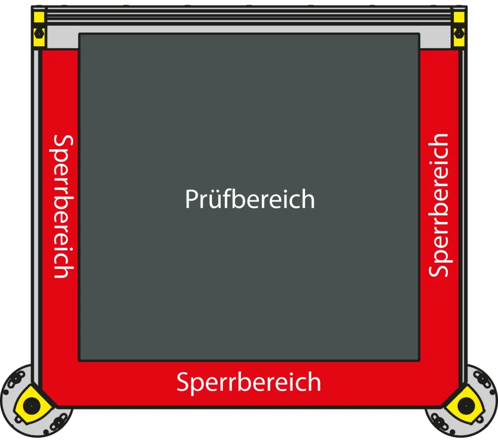 La distanza minima di sicurezza tra dispositivo di protezione ottico dispositivo di protezione il contorno esterno dell'oggetto in prova deve essere determinata con precisione. Progettiamo per voi la struttura esatta e le distanze di sicurezza necessarie.