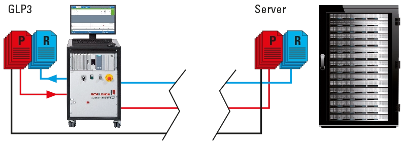 GLP3-M Prüfsysteme sind in der Lage, diese Kennzeichnungen und Zusatzinformationen z. B. über Barcodeeingaben zu erfassen und zusammen mit den Prüfergebnissen, dem Prüfdatum und den Prüfernamen in der Datenbank des Prüfgerätes oder im Netzwerk zu speichern. Anhand dieser Informationen kann später nachvollzogen werden, wo, wann und von wem Bauteile im Fertigungsprozess bearbeitet oder angeliefert wurden.