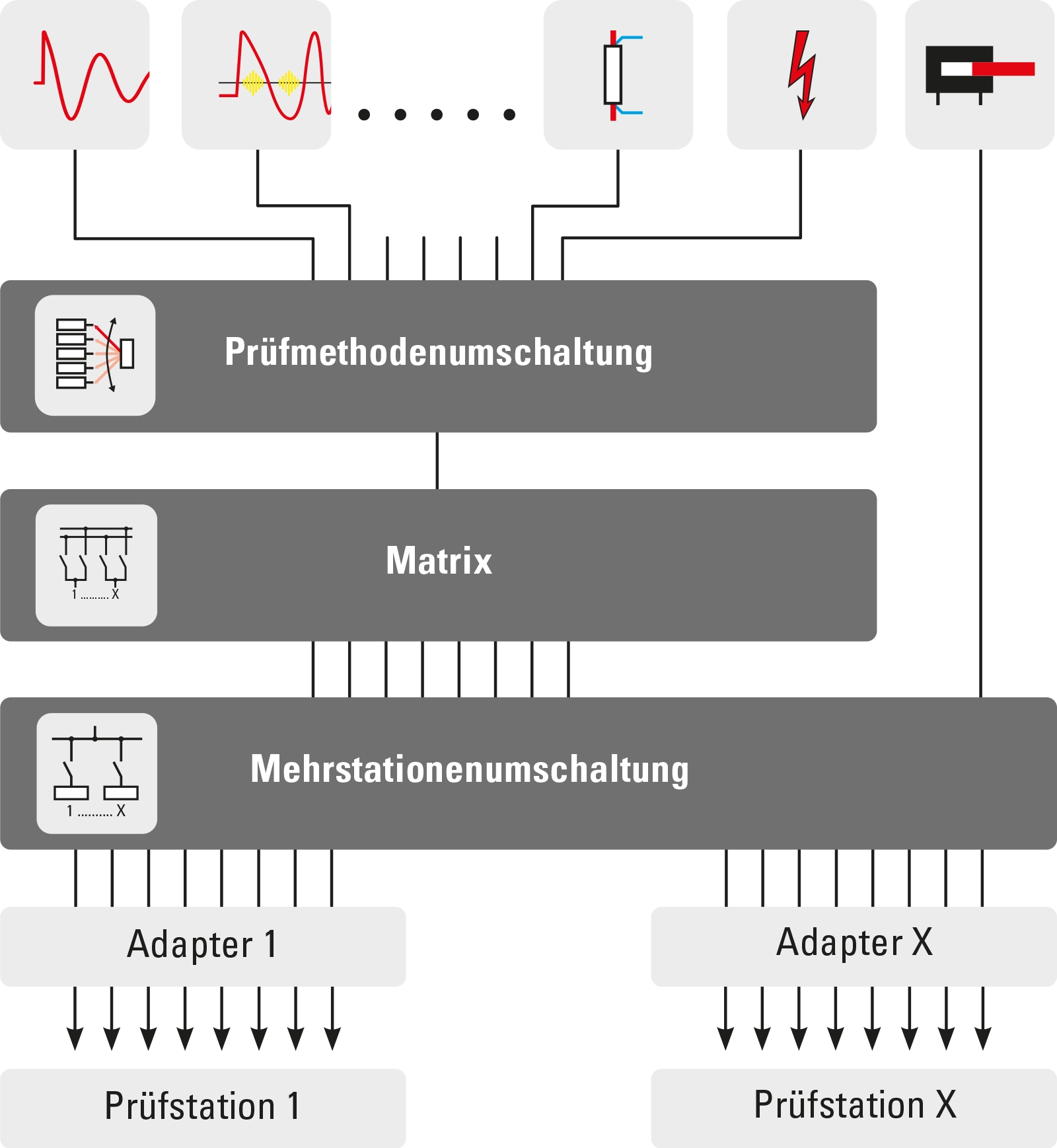 - Mehrfachstationen mit bis zu 50 Prüfplätzen