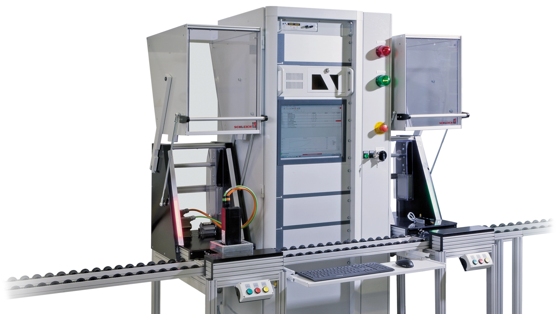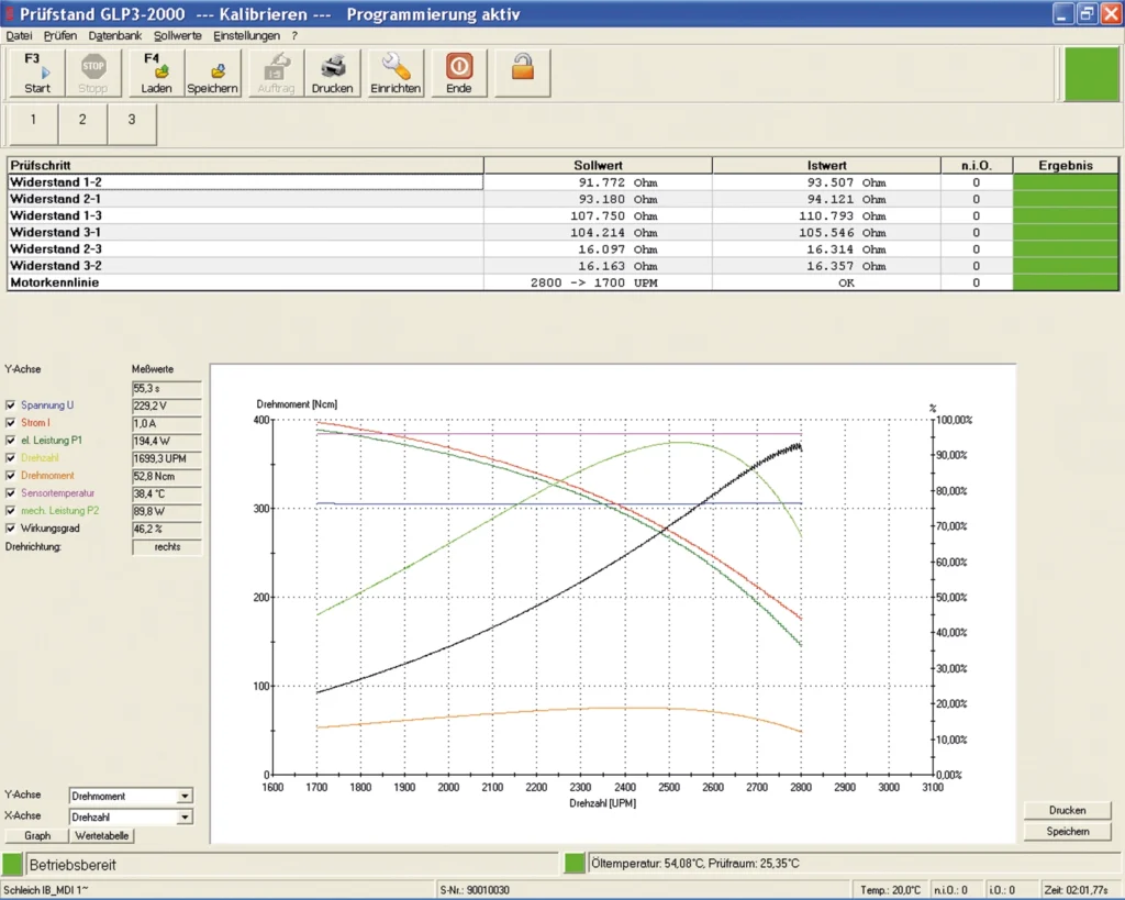 Hard- und Software werden von SCHLEICH selbst entwickelt und produziert. Software und Datenbank sind auf dem neuesten Stand bewährter Microsoft®-Technologie. Unsere vielfältigen Innovationen setzen immer wieder technologische Maßstäbe für moderne Prüfstände unter Windows®. Das System bietet dem Bediener eine klare, übersichtliche Darstellung der Prüfung – dem Einrichter stehen umfangreiche Eingabe- und Konfigurationsmöglichkeiten zur Verfügung.