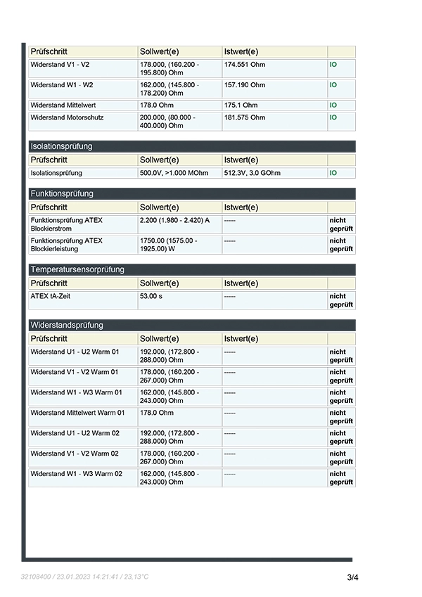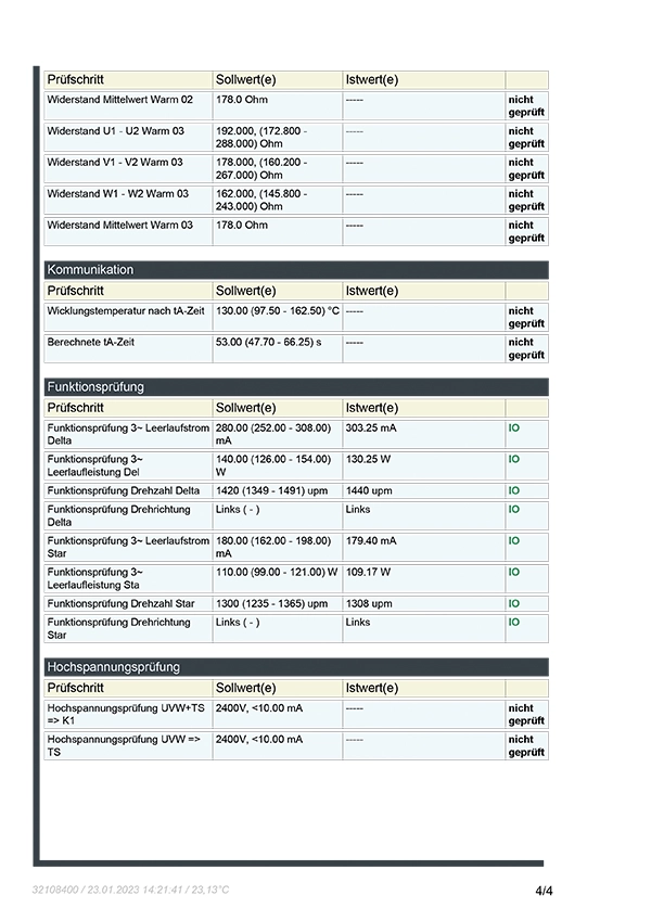- Prüfung aller Anbauteile – Drehgeber, Bremsen, Temperaturfühler …