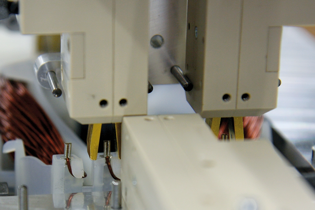Automatische Kontaktierung eines Staubsaugermotors in einer Fertigunglinie