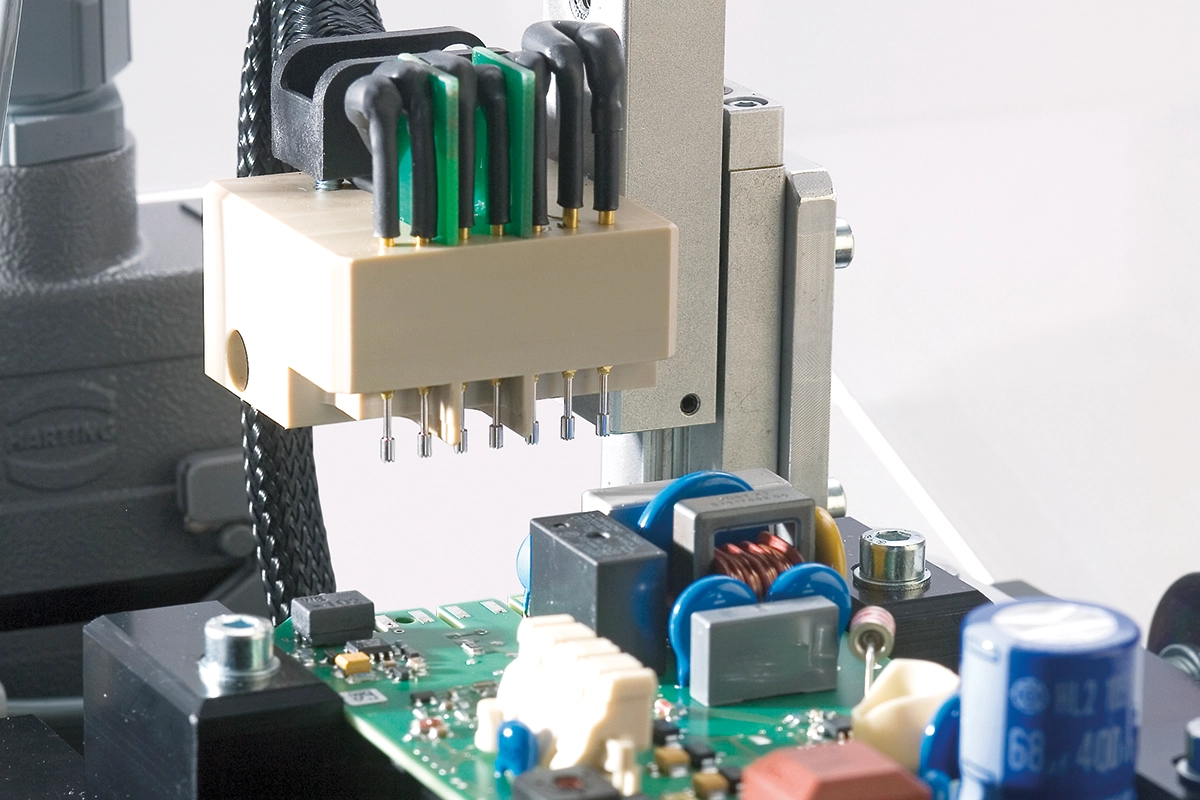 Automatische Kontaktierung einer Leiterkarte mit federnden Kontaktstiften