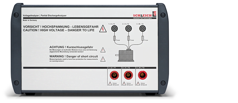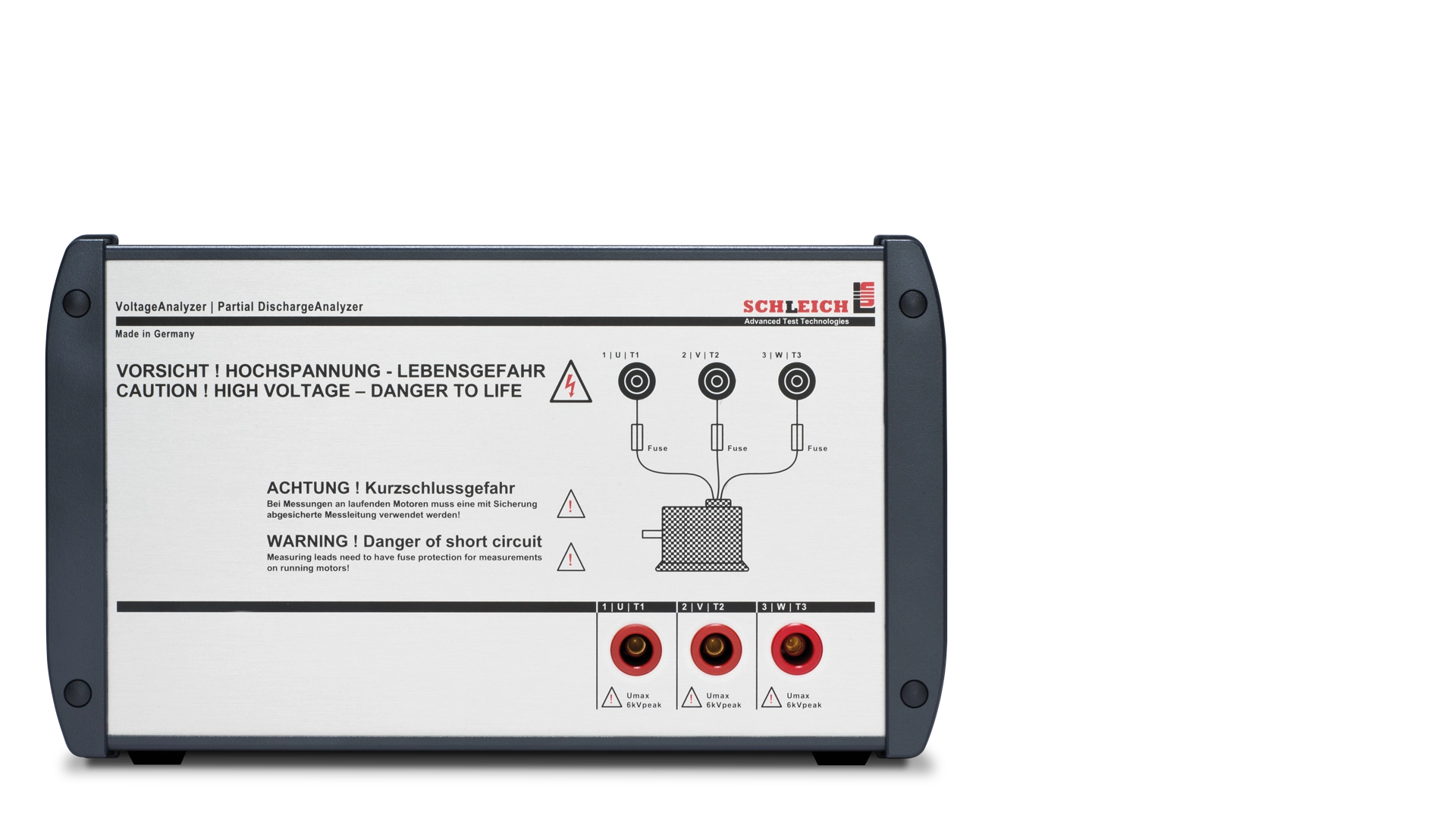 Der VoltageAnalyzer dient zur Messung von Stoßspannungssignalen direkt an der Elektromotorwicklung. Der Frequenzgang deckt den Bereich von DC bis zu sehr hohen Pulsfrequenzen im MHz-Bereich ab. Damit ist der VoltageAnalyzer ideal für hochgenaue Stoßspannungs- und Teilentladungsmessungen geeignet.