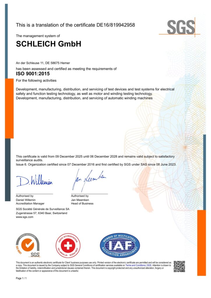Jährliche externe Audits durch die SGS-TÜV Saar GmbH bestätigen das hohe Niveau unseres systematischen Qualitätsmanagements. Aktuell sind wir nach dem Standard ISO 9001:2015 zertifiziert.